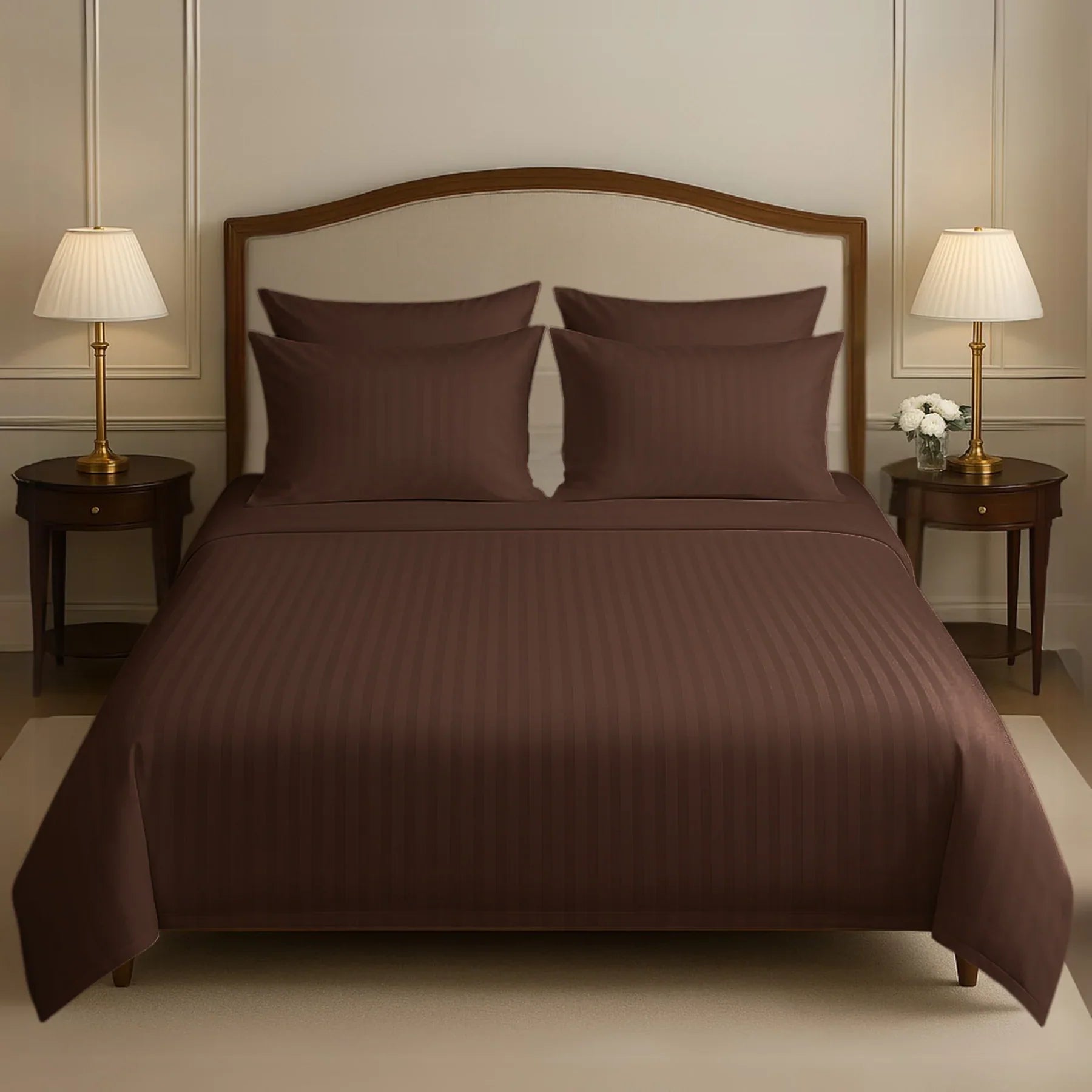 8 Pcs Comforter Set  CHOCO SATIN STRIPE light weight filling )