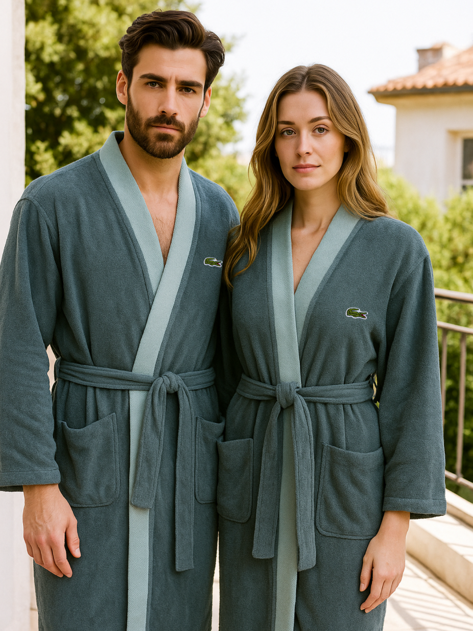 Branded lacoste bathrobe | for Men and Women | unisex 100% cotton light teal